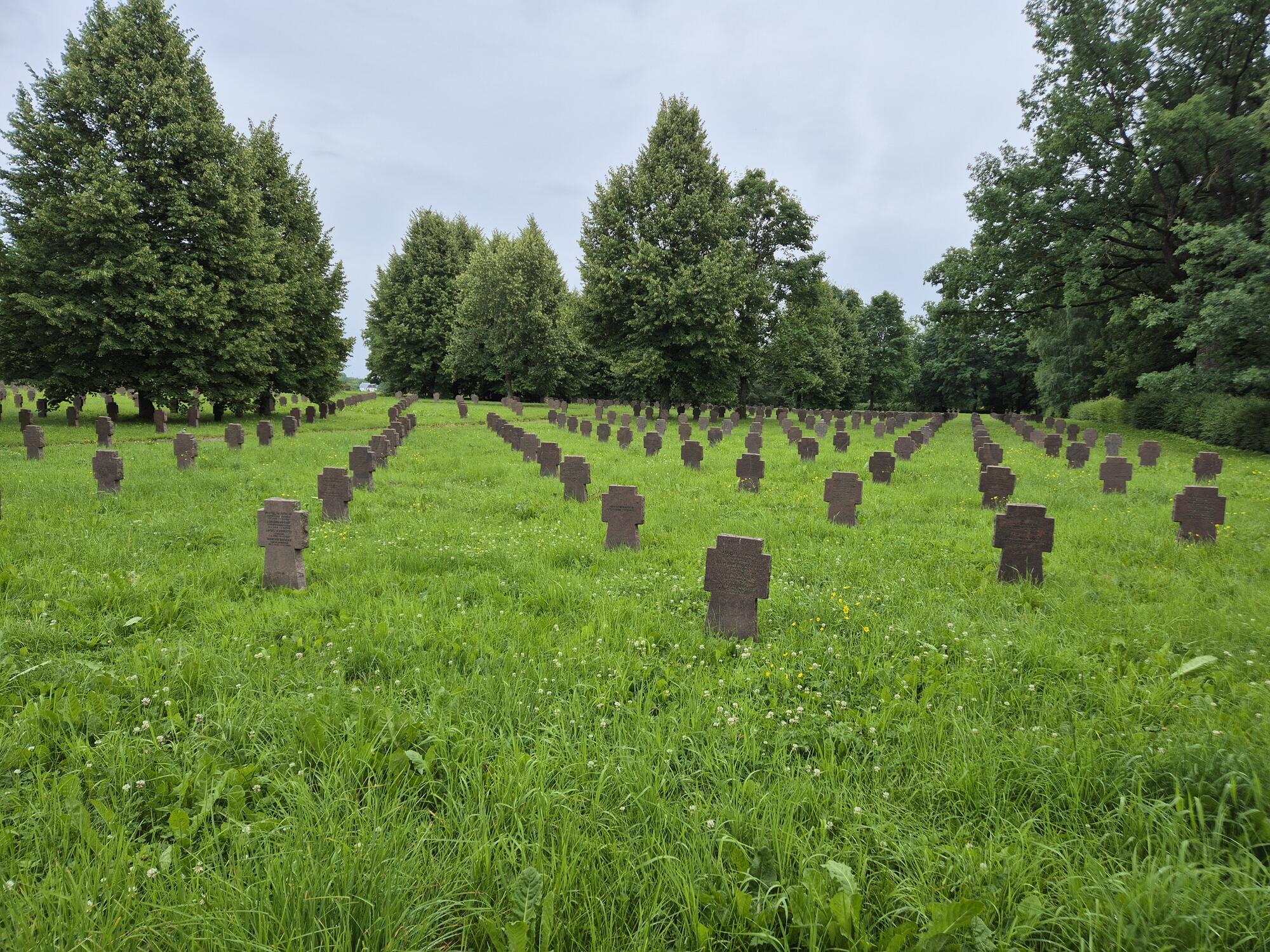 Nach einem etwas verschlafenem Morgen kehrten wir Tallinn den Rücken und brachten auf der Schnellstraße Richtung Osten schnell einige Kilometer hinter uns. Bei der ersten Möglichkeit die Schnellstraße zu verlassen, nutzten wir diese und nahmen eine Abzweigung mit Richtung auf den Lahemaa Nationalpark. Zum Einstieg konnten wir bei einem unvorhergesehenen Halt einen Wasserfall bestaunen, bevor es dann endgültig auf die Straße durch den Nationalpark ging. Hier überraschten uns mehrere kurvige Abschnitte, die vom Straßenbauer scheinbar für Motorradfahrer entworfen worden waren und im krassen Gegensatz zu den von uns bisher gefahrenen Abschnitten standen. Da ich die Route daheim am Rechner geplant hatte, fern jeder Kenntnis des Straßenzustandes, fanden wir uns auch auf einer Straße wieder, die in Deutschland als besserer Feldweg durchgegangen wäre. Nach mehreren Fehlversuchen des Navis uns durch zugewucherte Wege, Sackgassen und über Privatgrundstücke zu lotsen, entschied ich mich die Wahl des Weges der Himmelsrichtung zu überlassen. So fanden wir nach einiger Zeit wieder auf asphaltierte Strassen, die uns zur Schnellstrasse und damit zu unserem Tagesziel Narwa bringen sollten. Da wir dort zeitig eintrafen, konnten wir noch den deutschen Soldatenfriedhof aufsuchen, im Grunde das Motiv für die ganze Reise und die Planung. Hier wollte ich die Grabstelle meines Großvaters suchen, den ich nie kennengelernt habe und wenn mich jemand gefragt hätte, zu dem ich demzufolge auch keine Beziehung habe. Wer ähnlich denken sollte, dem empfehle ich solch eine Stätte aufzusuchen. Die ganzen Reihen mit Kreuzen abzulaufen, Namen über Namen, unbekannte Soldaten, immer mehrere pro Grabkreuz, 'Zwei unbekannte deutsche Soldaten', 'Sechs unbekannte deutsche Soldaten' und dazu die vielen Namen die auch aus unserer Region stammen könnten. Um die 15.000 deutschen Soldaten liegen hier in Narwa und es ist ein bedrückendes Gefühl diese vielen Namen zu lesen, von denen die meisten gerade mal 30 Jahre alt geworden sind. Im Grunde hatte ich die Hoffnung aufgegeben, den richtigen Namen zu finden, als ich auf einer Stele den Namen meines Großvaters las, einer unter vielen an diesem Denkmal, fein säuberlich nach Nachnamen sortiert.