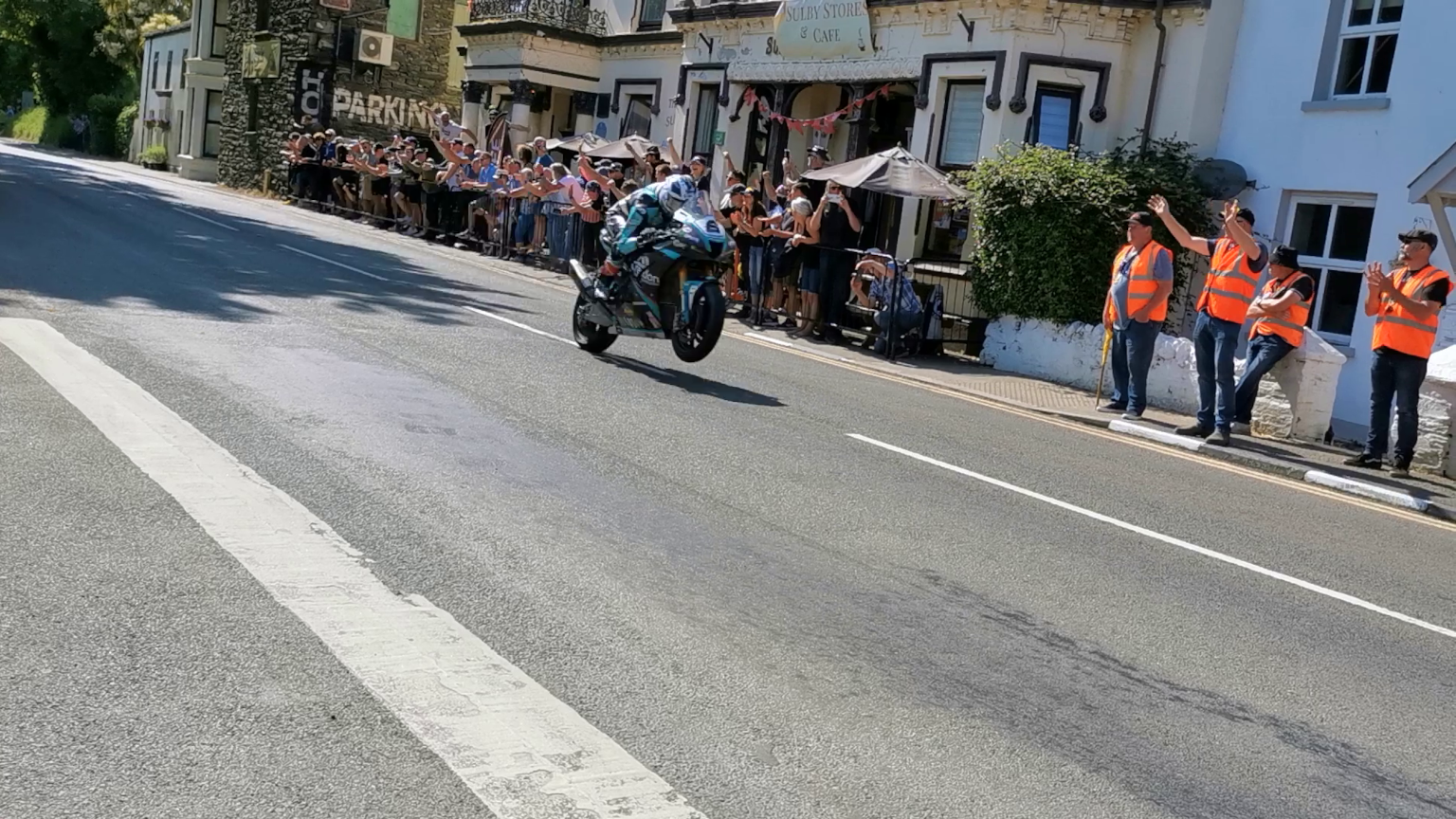 Der Samstag verlief dann komplett mopedfrei. Nach der längeren Anfahrt musste am Samstag morgen erstmal eingekauft werden, um den Kühlschrank den Erfordernissen entsprechend aufzufüllen. Nach dem dann folgenden ausgedehnten Frühstück konnten wir uns dann mit entsprechenden Flüssigkeitsvorräten versehen, an die Rennstrecke begeben. Diese lag ja quasi vor der Haustür, also 100m entfernt. Mit einem gemütlichen Abend bei ein Paar Dosen Hefekaltschale klang der Tag dann aus. Für den Sonntag stand dann Rennprogramm auf dem Tagesplan. Vor Beginn der Rennen hatten wir noch die Möglichkeit, angeführt von unserem Reiseleiter den nördlichen Bereich der Insel zu erkunden, unter anderem mit einem Ausflug an einen wunderschönen Sandstrand. Nach dieser touristischen Einlage ging es dann zum Streckenabschnitt Bungalow in den Bergen, wo nach zwei Stunden Wartezeit die ersten Motorräder laut vernehmbar von Ramsey Richtung Douglas an uns vorbeizogen, nein, eher sich vorbei beamten. Nach zwei von drei Runden machten wir uns dann auf den Weg nach Sulby um dort am schnellsten Streckenabschnitt mit Gänsehautgarantie zu bestaunen, wie die Maschinen mit mehr als 300 km/h an uns vorbeiflogen. Mit Ende des Rennens und Öffnung der Straße machten wir uns auf den Weg gen heimatlicher Wohnung in Ramsey. Dort besuchten wir nach einem kurzen Abendessen noch die Veranstaltung am Hafen mit Livemusik und frischem Bier direkt aus dem benachbarten Pub. Mit guten Gesprächen und der Erkenntnis, das ich hier genau die richtige Truppe getroffen hatte, ging es dann zur Wohnung, um sich hier in die Horizontale zu begeben.