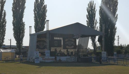 Beim nächsten Tankstop wurde ich auf deutsch von einer Rumänin angesprochen, wo ich herkomme, was ich hier mache und ob ich etwas Geld für ihre Kinder habe ... Nachdem ich das abgeleht hatte, kam ein Mitarbeiter der Tankstelle zu mir und wollte mir unbedingt etwas erzählen. Da mein Rumänisch und sein Englisch in gleicher Form nahezu nicht vorhanden war, fing er an zu telefonieren und hatte beim geschätzt 10ten Versuch seine Cousine, die in Düsseldorf lebt, am Telefon. Sie übersetzte dann für uns beide und es stellte sich heraus, das im Ort, den ich 5 km vorher durchfahren hatte, ein Bikerfestival stattfand. Er erklärte mir, wie ich es finde und da er so begeistert davon war, sagte ich zu, dorthin zu fahren. Es ging wie versprochen wieder zurück und nach seiner Beschreibung fand ich auf Anhieb das Treffen, das auf einem Sportplatz stattfand. Jetzt würde auch endlich mal mein Zelt zum Einsatz kommen. Waren auch sehr nette Jungs, alles ähnlich wie in Deutschland, Kutte, kaltes Bier und laute Musik. Ich holte mir direkt 10 Jetons (1 Jeton = 1 Bier) und dachte, damit würde ich den Tag gut überstehen, war ja erst 15 Uhr und ich war einer der ersten Gäste, quasi der einzige bisher. Als ich abends im Zelt aufwachte, war es dunkel und ich hatte keine Jetons mehr in der Tasche. Vielleicht hätte ich beim dritten Bier doch auf einen der selbstgebrannten verzichten sollen, die ich zusammen mit einem der Jungs vom MC getrunken hatte. Jedenfalls spielte jetzt schon die Liveband und es war recht voll geworden. Also raus aus dem Zelt, ein frisches Bier holen und ab vor die Bühne. Auch die Musik war ähnlich, wie ich es aus Deutschland kenne, das gefiel mir. Und so fand dieser Tag einen etwas späteren Abschluß als die anderen, dafür mit guter Mucke und ebensolcher Stimmung.
