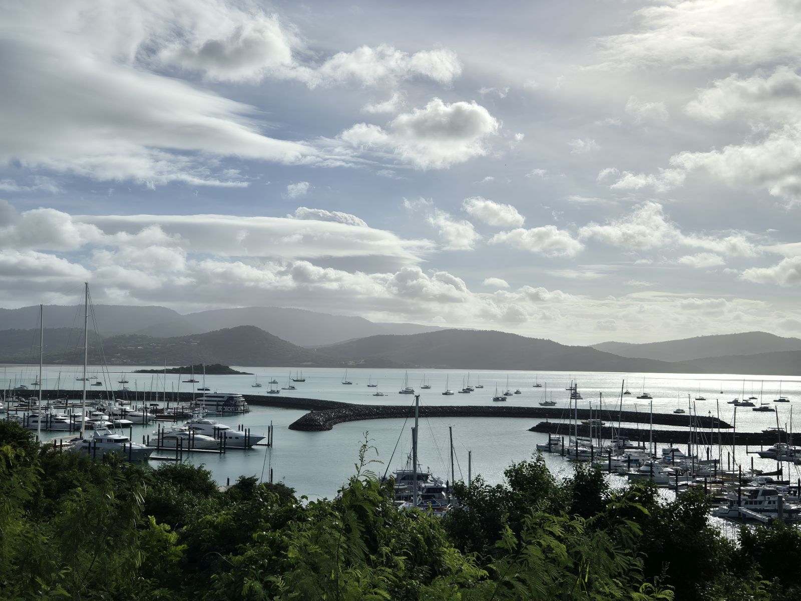 Da die Strecke heute überschaubar sein sollte, schlief ich in Ruhe aus. Nach einem kurzen Frühstück ging es dann wieder auf den Motorway, sagte ich schon das der Motorway ziemlich eintönig ist. Das ist hier wohl auch bekannt, deshalb stehen alle paar Kilometer Schilder, auf denen auf Pausen hingewiesen wird oder zu kleinen Ratespielen aufgefordert wird. Auf manchen stehen dann auch kleine Rätsel, die ein paar Kilometer weiter mit einem anderem Schild aufgelöst werden. Da ich wie gesagt, Zeit hatte, machte ich noch einen Abstecher in den Eungella Nationalpark. Am gestrigen Tag hatte ich viele Nationalparks auf die mit Schildern hingewiesen wurde, rechts und links liegen lassen, einfach um Strecke zu machen. Heute konnte ich mal wieder einen dieser Abstecher machen und wurde auch mit einer schönen Motorradstrecke belohnt, Steigungen und Kurven wir in den Alpen, gut, nicht so hoch und so viele, es war für mich mal eine angenehme Abwechslung zum Motorway. Nach diesem erfreulichen Abstecher, bei dem ich auch noch die Aussicht über die Ebene geniessen konnte, war ich nach zwei Stunden wieder auf dem Motorway und absolvierte die restlichen Kilometer bis nach Airlie Beach. Hier hatte ich mit der Unterkunft mal einen richtigen Glücksgriff getan, ein Blick auf die Bucht und die davorliegenden Inseln vom Balkon aus. Gut, ein paar Pflanzen davor, aber das war doch mal etrwas anderes als das Motelzimmer von letzter Nacht. Eine kurze Ruhepause später machte ich noch einen Strandspaziergang, versorgte mich mit etwas Verpflegung und kehrte in meine Unterkunft zurück. Hier war mal wieder Bestandaufnahme angesagt um eine Übersicht über die nächsten erforderlichen Besorgungen zu bekommen. Vom Strandspaziergang hatte ich mir für den Feierabend auf dem Balkon ein schönes Bier mitgebracht, das würde ich mir bei der entspannten Atmosphäre hier schmecken lassen.