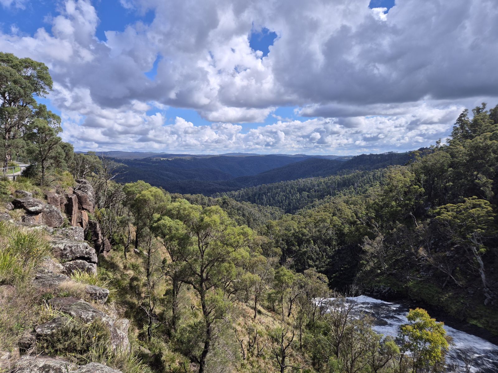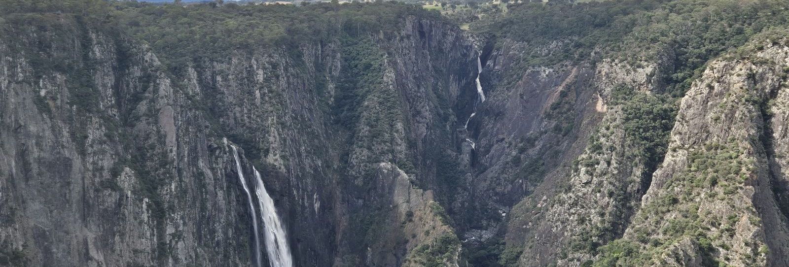Da es gestern mit dem Weg durch die Berge nicht geklappt hatte, war meine selbsternannte Navigatorin auf die Idee gekommen, den Waterfall Way abzufahren. Wie der Name schon vermuten lässt, sind an dieser Route Wasserfälle vorhanden, in diesem Fall drei an der Zahl. Dazu fuhren wir den Motorway einige Kilometer zurück und bogen bei Urunga in die Berge ab. Der erste Wasserfall, der DangarFall war schon nach einer guten Stunde Fahrzeit erreicht. Und wir konnten feststellen, es hatte sich gelohnt, den Schlenker in die Berge zu machen und nicht direkt die Weiterfahrt nach Byron Bay, dem Ziel des heutigen Tages anzutreten. Der zweite Wasserfall, die EborFalls, war da allerdings noch vielfältiger und schöner anzusehen, bestand er doch aus mehreren hintereinander liegenden Wasserfällen. Ursprünglich wollten wir nun die Weiterfahrt nach Byron Bay antreten, überlegten es uns dann doch anders und fuhren auch noch den dritten Wasserfall bei Wollomombi an. Gut, das wir das gemacht hatten, das war eine andere Dimension wie die beiden vorhergehenden. Man konnte den oder besser die Wasserfälle nur aus einiger Entfernung bestaunen, da sie aus großer Höhe zu Boden stürzten. Wir waren uns einig, das der eindruckvollste Wasserfall, den wir bisher gesehen hatten. Nun war es auch an der Zeit, den Weg zum abendlichen Zielort anzutreten, wo wir gegen 16 Uhr eintreffen wollten. Kaum ein paar Kilometer unterwegs, bekamen wir dann die ersten Regentropfen ab. Der Himmel nahm mit jedem Kilometer eine dunklere Farbe an und das Naß, das daraus auf uns niederprasselte, wurde auch immer mehr. Nachdem wir uns zweimal untergestellt hatten und gewartet hatten, bis die Regenfront weitergezogen war und wir jedesmal beim Weiterfahren direkt wieder in der gleichen Schlechtwetterfront landeten, ergaben wir uns in unser Schicksal und fuhren mit dem Regengebiet mit bis nach Grafton, wo wir uns dann in einen Fastfood Imbiss flüchteten und den Boden unter Wasser setzten. Es gibt ja die Redensart, Regen ist nicht schlimm, das meiste fällt ja sowieso vorbei. Nun, an diesem Tag hätte ich beschwören können, das wir zumindest unser Bestes taten, um auch noch die Tropfen zu erwischen, die daneben fallen wollten. Nach weiteren zwei Stunden Fahrt kamen wir dann endlich wieder an die Küste, wo wir noch zwei lächerliche Regenschauer abbekamen und dann bei steigenden Temperaturen und dank dem Fahrtwind während der letzten Stunde Fahrt langsam abtrockneten. Angekommen in Byron Bay war ich überrascht über den Kontrast zu den Tageserlebnissen. Was für ein Badeort, Temperaturen weit über 20 Grad, abends um 18 Uhr laufen die Leute in Badekleidung noch vom Strand über die Strasse zum Lokal. Alle Lokale in Strandnähe gut gefüllt und viel Trubel auf den Straßen. Wir steuerten jedenfalls unser Motel an, holten beim von meiner Mitfahrerin favorisierten Schnellimbiss unser Abendessen und verzehrten es in Ruhe am Strand, bevor wir uns von der Anstrengung des Tages ausruhten.