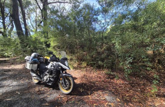 Nach dem Aufwachen stellten wir fest, das die zum trocknen aufgehängten Sachen immer noch annähernd genauso naß waren wie am Vorabend. Auch die Handtücher, die wir nach dem Duschen an Vortag benutzt hatten, waren noch genauso feucht wie nach dem Abtrocknen. Musste wohl irgendwas mit der Luftfeuchtigkeit zu tun haben... Also alle nassen Sachen, die wir zum Fahren benötigten wieder anziehen und die anderen einfach ins Gepäck stopfen. Das erste Etappenziel für den heutigen Tag war der Nationalpark Jervis Bay, den wir nach ca. einer Stunde erreichten. Dort erwartete uns ein urwüchsiger Urwald und da Jervis Bay auf einer Halbinsel liegt, machten wir natürlich auch ein paar Schritte an den Strand. Das Wetter für den heutigen Tag versprach tatsächlich trocken zu bleiben ...